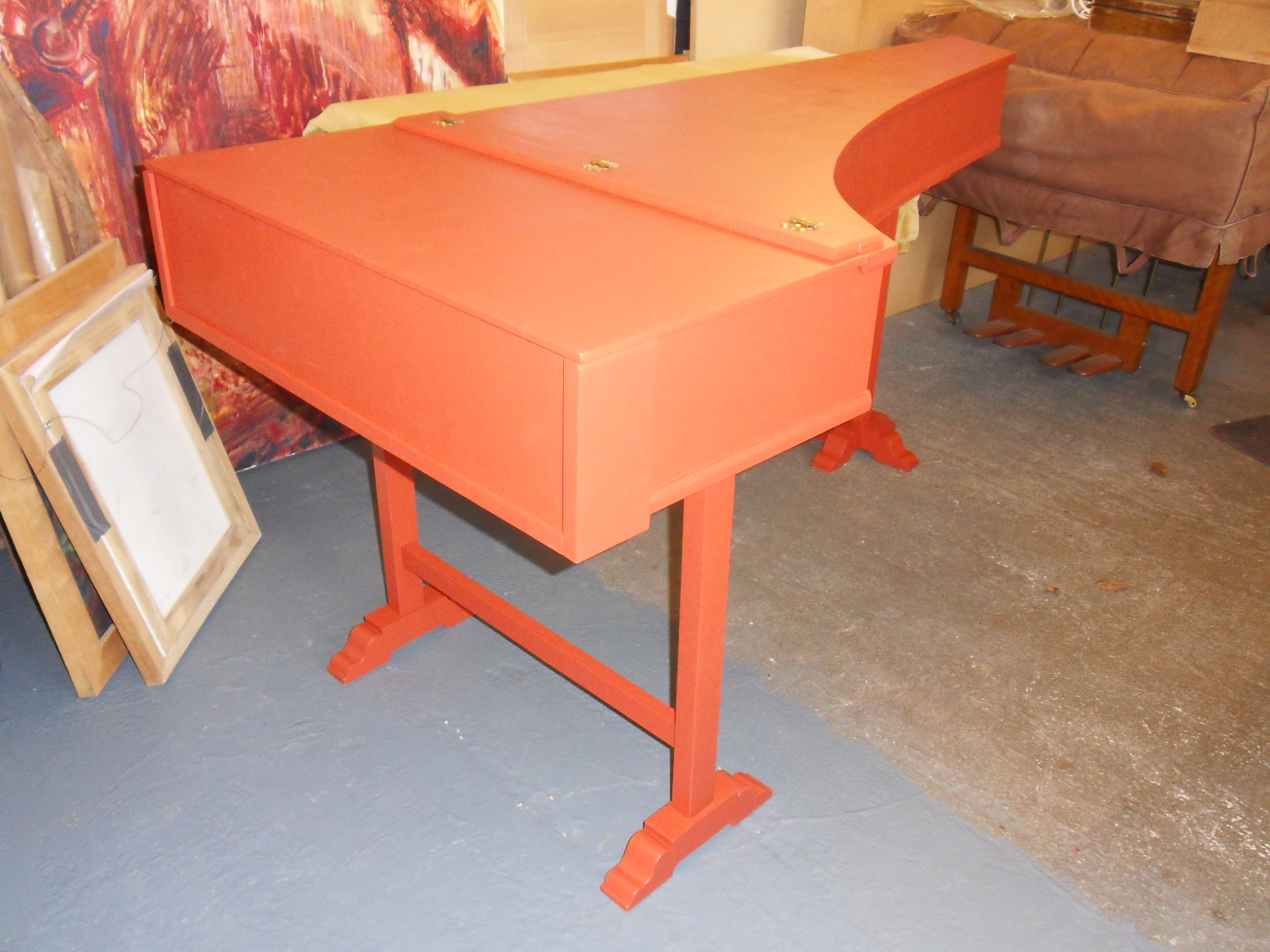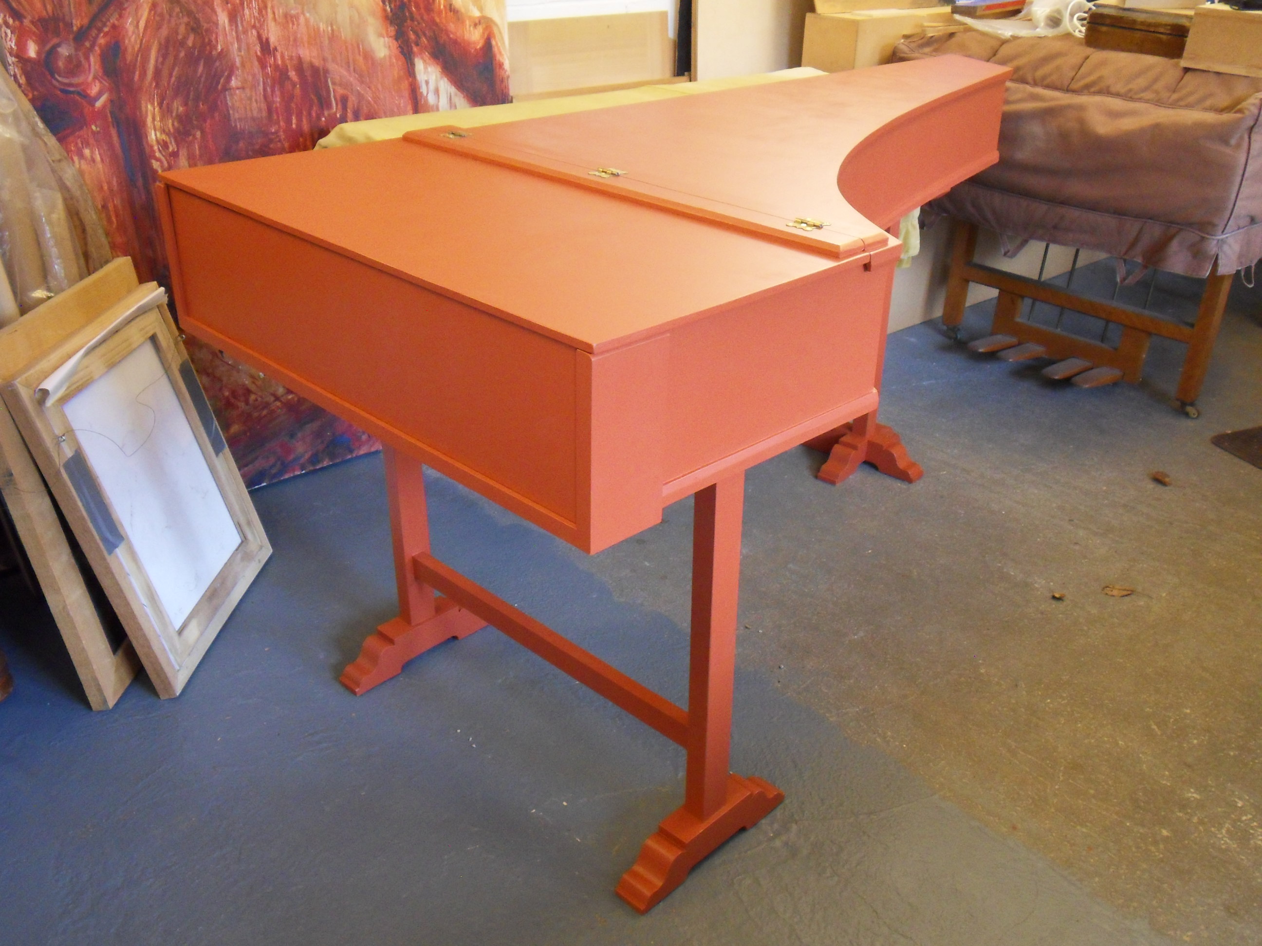 This Single Manual Italian Harpsichord was started at the London College of Furniture by Peter Stephens c.2000. It was at an early stage with the case made and sides prepared for fitting.